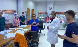 Başhekimimiz Dr. Mahmut Bayrakçıoğlu, daha sonra Yeni doğan yoğun bakım ve ameliyathane personeline ziyarette bulundu, ünitelerin çalışmalarını denetleyerek, uygulamalar hakkında detaylı ve geniş bilgi aldı.” -Cemil Yıldız-