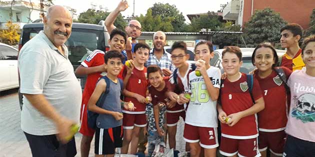 Hatay Büyükşehir U 13 Takım Kaptanı İsmail Camuz, takım arkadaşı Derya Tatlıcıoğlu ile birlikte Hatayspor a transferini, takım arkadaşları ve hocalarıyla, bir sandık mandalina yiyerek kutladı. 2007 doğumlu İsmail, kendisi ile aynı ismi olan dedesi İsmail Camuz’un Samandağ – Mızraklı Köyü’ndeki kendi bahçesinden gönderdiği bir sandık erkenci mandalinayı, yorucu bir antrenman sonrası, Hocaları Ayhan Kılıç ve arkadaşla-rıyla birlikte iştahla yedi. Bu arada iki yetenekli genç, İsmail Camuz ve Derya Tatlıcıoğlu, Hatayspor’un altyapısına geldikleri için çok mutlu olduklarını ifade ettiler. Bunun yanında, kendilerini yetiştiren ve trans-ferin gerçekleştirilmesine yardımcı olan, Hatay Büyükşehir’den Necip Aydın, Ali Özgür Yolcu, Hüseyin Saker ve Ahmet Şahan ile Hatayspor altyapı sorumlu hocalarından Barış Harputoglu, Ayhan Kaya ve U 13 sorumlu Hocası Ayhan Kılıç’a da teşekkür ettiler. -Cemil Yıldız-