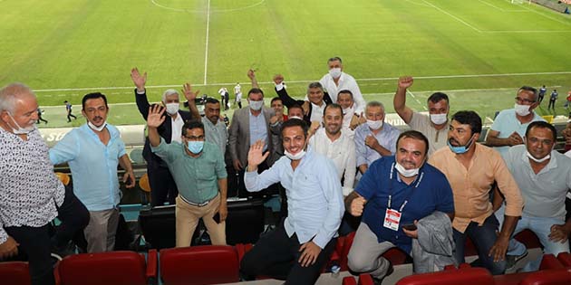 Tribündeki Hatayspor Yöneticilerinin mesajı, “Süper Lig’de ilk sezon, ilk maç, ilk galibiyet ve kaldığımız yerden devam” şeklinde oldu. -Cemil Yıldız-