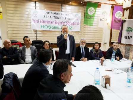 Hatay’a gelen HDP Eş Genel Başkanı Sezai Temelli: “Tek başımıza belediye başkanlığını kazanamayacağımız yerlerde; toplumun beklentilerine, demokrasi güçlerinin, demokrasi cephesinin, emekçilerin, kadınların beklentilerine yanıt verecek şekilde, o doğal ittifakın gereğini yapacağız.”