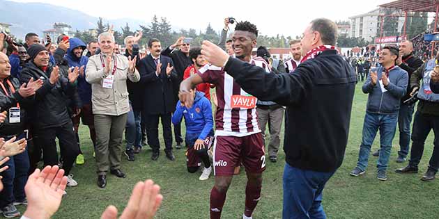 Dünkü galibiyetle beraber, Hatayspor, Ziraat Türkiye Kupası’nda son 8 takım arasına girdi ve çeyrek finale kaldı. Maç bitimi, Hatayspor futbolcuları ile Hatay Büyükşehir Belediye Başkanı Lütfü Savaş, galibiyet sevincini saha ortasında ve müzik eşliğinde ÇİFTETELLİ oynayarak kutladı. -Cemil Yıldız-