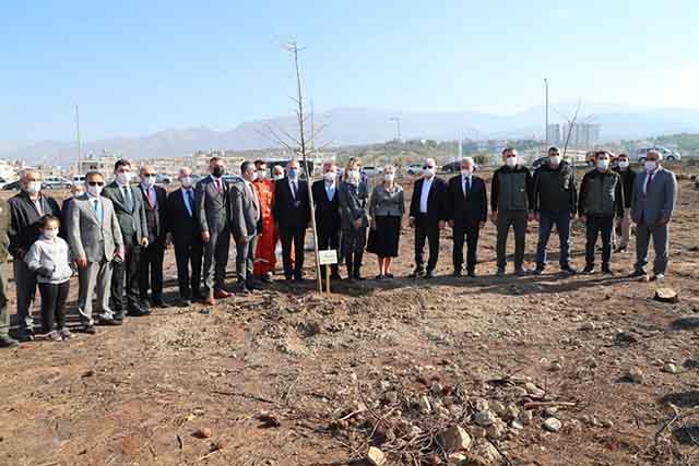 Hatay Valisi Rahmi Doğan’ın da katılımıyla, İskenderun – Belen – Arsuz kavşağında, Şef Jale Balcı öncülüğünde gönüllüler tarafından oluşturulan Mabet Ağacı Ormanı fidan dikimi gerçekleştirildi.