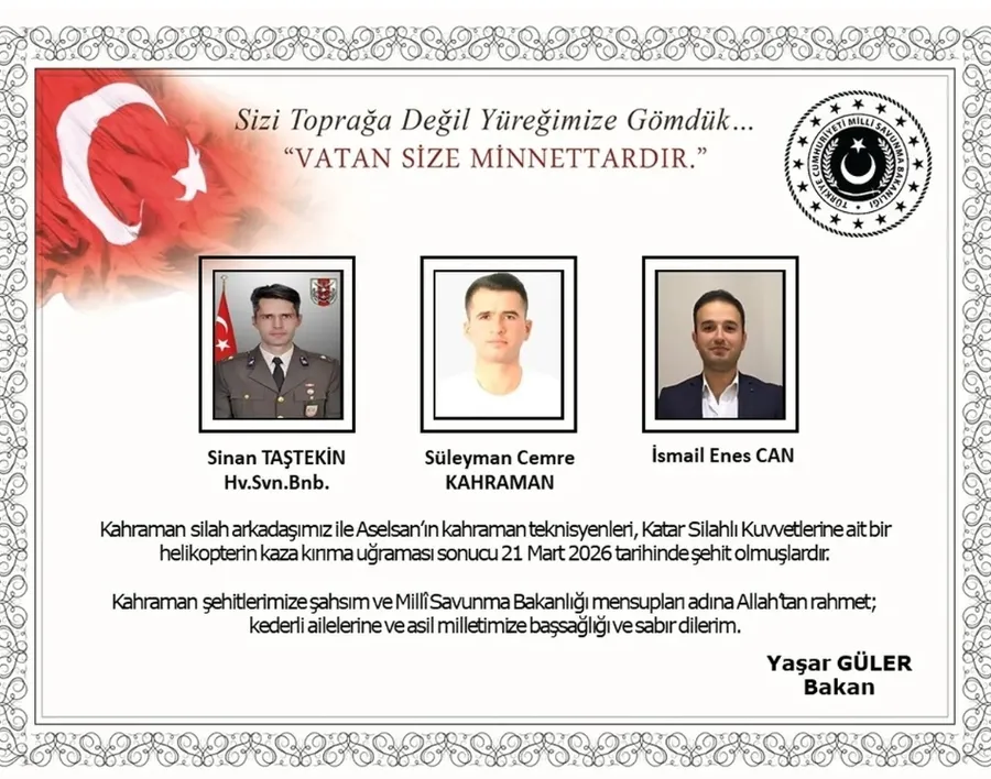 Katar’da meydana gelen askeri helikopter kazası, Türkiye’yi yasa boğdu. Katar açıklarında denize düşen helikopterde bulunan 1 Türk Silahlı Kuvvetleri (TSK) personeli ile 2 ASELSAN personelinin şehit olduğu açıklandı.