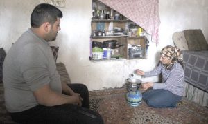 Türkiye’ye iki yıl önce geldiklerini anlatan Ahmet Abdullah (32), ölümden kaçmak için 3 çocuğu ve eşiyle mecburen Türkiye’ye geldiklerini söyledi. Ev kiralayacak imkanları olmadığı için bir hayırseverin verdiği tek odalı, derme çatma çiftlik evine yerleştiklerini belirten Abdullah, “Ev yaklaşık 100 yıl önce yapılmış ve 20 yıldır da kullanılmayan bir toprak bir ev. Mecburen buraya yerleşmek zorunda kaldık. Çocuklarım küçük sokakta kalamazdık.” dedi. Evi bir ayda onarıp eşi ve çocuklarıyla yaşamaya başladığını aktaran Abdullah, hayırseverlerden temin ettikleri eski eşyaları da evlerinde kullandıklarını söyledi. Gündelik işlerde çalışıp evine yiyecek getirdiğini kaydeden Abdullah, şöyle devam etti: “Ev eski olduğundan eksikleri çok. Banyosu, mutfağı, yatak odası hepsi 12 metrekarenin içinde. Hem belimde sorun var hem de psikolojik olarak tedavi görmem gerekiyor. O nedenle de çoğu zaman işe gidemiyorum. Mecburen bu eve yerleşmek zorunda kaldık. Çocuklarım küçük sokakta kalamazdık. Bize yardım elini uzatan kaymakamlığa ve tüm Türkiye’ye minnettarız. Her zaman yanımızdalar, Allah Türkiye’den razı olsun.” -AA-