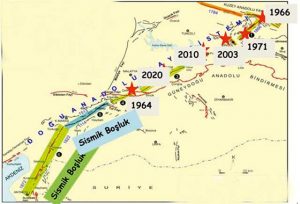 Şöyle ki… Yıkıcı deprem aktivitesi, 1939 Erzincan depremi (fayın doğu kesiminde) ile başladı. Daha sonra 1943 Ladik depremi (fayın orta kesimi) ve 1944 Gerede depremleriyle, fayın batı kesimi ve daha sonra 1951 Kurşunlu (Çankırı) ve 1967 Mudurnu depremiyle Marmara bölgesine kadar göç etmiştir.