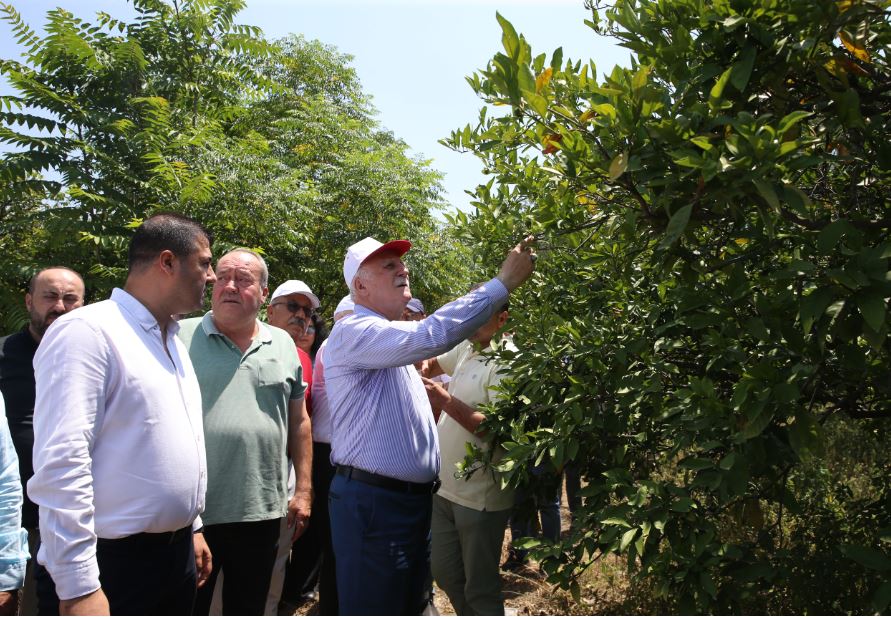 Bayraktar, ilçeye bağlı Başlamış Mahallesi’ndeki narenciye bahçelerini gezdi, oda başkanlarından ve üreticilerden bilgi aldı.