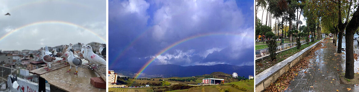 “Hoş geldin kış… Antakya’yı gökkuşağı kucakladı bugün, yağmur sardı, rüzgar okşadı. Sonbahara veda ederken, Antakya’nın kış manzaraları gönüllerimizi ısıttı. Sevdiklerinizle, huzur dolu bir kış geçirmeniz dileğiyle…”