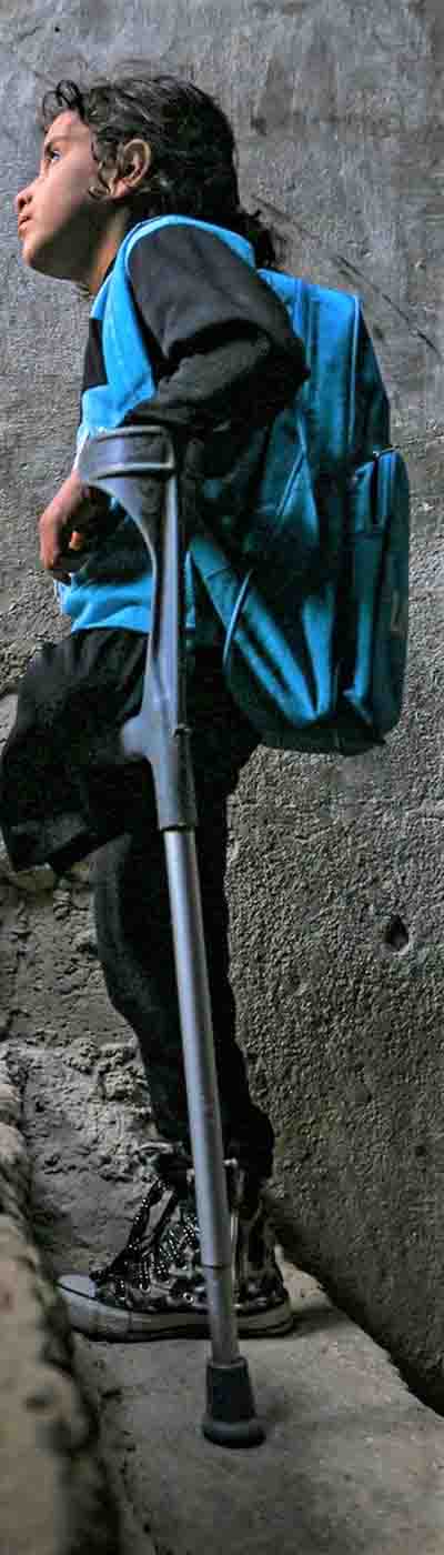 Henüz 3 yaşındayken, elinden tuttuğu annesi ve kardeşi ile bayram alışverişi için gittiği çarşıda savaş uçaklarının saldırısına uğrayarak bir bacağını kaybeden Fatma, tüm zorluklara rağmen okula gitmekten vazgeçmiyor.