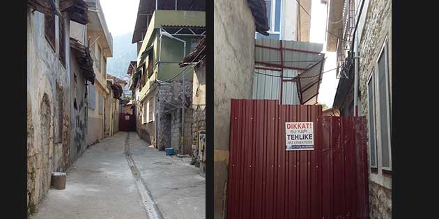 Habibi-i Neccar Cami noktasında durup da, HASİAD’ın olduğu dar sokaktan yukarıya doğru adımlamak isteyenleri durduran bir çalışma var, son günlerde. Üzerinde, “Dikkat, bu yapı tehlike arz etmektedir” diyen uyarının altında Antakya Belediyesi