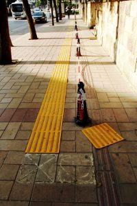 sökülmüş, hatta yerinden sökülenler de duvarın bir kenarında üst üste eklenerek biriktirilmiş! Yapılan işin ‘yaptım-oldu’ kısmı mı? Yine olmamış! Hiç olmamış! Olduğu kısmıyla da engelli bireyler adına utandırmış.