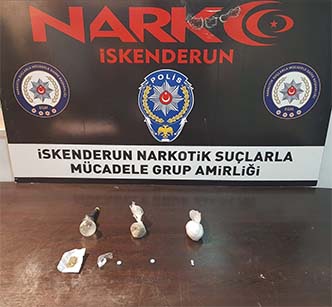 İskenderun NSM Grup Amirliği görevlileri tarafından, uyuşturucu veya uyarıcı madde imal ve ticareti yapan şahıslara yönelik yapılan bir başka çalışmada, A.A. isimli şahsın bulunduğu 31…plaka sayılı araç içerisinde ve şahıs üzerinde narkotik dedektör köpeği arven eşliğinde yapılan aramada 50 gram metamfetamin, 2 adet extacy, 1 gram metamfetamin, 1.15 gram esrar, 8.20 gram esrar, 1 gr metamfetamin, ele geçirildi. Bu arada, iki ayrı ev aramasında da uyuşturuculara rastlandı.