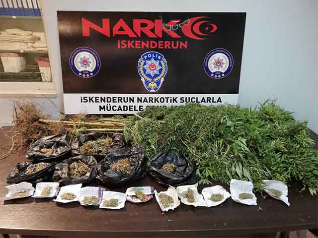 Hatay NSM Şube Müdürlüğü ekiplerince, uyuşturucu veya uyarıcı madde ticareti yapan ve yasadışı kenevir ekimi yapan şahıslara yönelik yapılan çalışmalarda, E.Ö. isimli şahsın, Defne ilçesi Harbiye Mahallesi’nde bulunan ikametinde yapılan aramada;