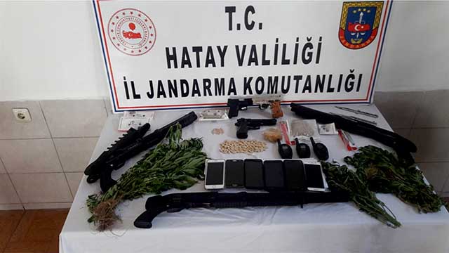 Hatay İl Jandarma Komutanlığı’nca geçen hafta içerisinde Kırıkhan, Antakya, Defne, İskenderun ve Reyhanlı ilçelerinde uyuşturucu madde satıcılarına yönelik operasyonda, 31 adrese baskınlar düzenlendi ve 3,5 gram toz esrar, 1 kilo kubar esrar, 17 kök Hint keneviri, 14 gram kenevir tohumu, 147 gram bonzai, bin 71 adet hap, 98 gram uyuşturucu madde olduğu değerlendirilen beyaz renkli toz, 2 uyuşturucu içme aparatı, 1 namlusu değiştirilmiş tabanca, 3 kurusıkı tabanca, 4 şarjör, susturucu, 2 bıçak, 3 av tüfeği, 3 el telsizi, 3 cep telefonu ele geçirildi. Olayla ilgili, 1’i Suriye uyruklu 34 şüpheli gözaltına alındı. İl Jandarma Komutanlığı’na götürülen şüphelilerden sorguları tamamlanan 19’u Kırıkhan Adliyesi’ne sevk edildi. Diğer şüphelilerin sorgusunun sürdüğü belirtildi. Olayla ilgili 5 şüphelinin ise yakalanmasına çalışılıyor. -Cemil Yıldız-