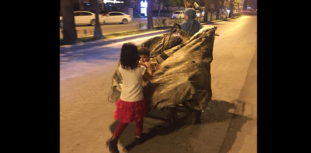 12 Haziran Salı “Dünya Çocuk İşçiliği İle Mücadele Günü” idi. Gecenin ileri bir saatiydi. Neredeyse sahur yaklaşmıştı ki, Antakya Ürgen Paşa Mahallesi 75.Yıl Caddesi’nde, Suriyeli 11-12 yaşlarındaki bir kız, arkasına aldığı karton toplama tekerlekli arabası ve iki küçük yaştaki kardeşiyle karton kutu toplamak, ekmek parasını çıkartmak üzere Antakya sokaklarındaydı.