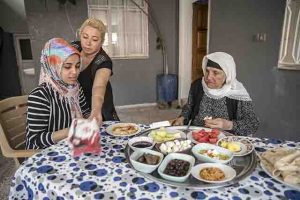 “Afrin’den, Reyhanlı’ya 18 yaşında geldim ve eşimle burada evlendikten sonra bir daha dönmedim. Allah’a şükür sağlığımı düzenli bir hayata borçluyum. Sabah namazıyla ayağa kalkıyorum ve kahvaltımı erkenden yapıyorum. Günde en az bir kilometre yürüyorum. Süt, yoğurt, tereyağı ve meyvemi eksik etmiyorum. Çok şükür herhangi bir rahatsızlığım yok. Evlatlarımla bir arada yaşamak çok güzel, bu günlerimize şükürler olsun.”