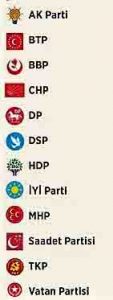 Adana, Ankara, Aydın, Eskişehir, Gaziantep, Hatay ve Kahramanmaraş’ta 7, Antalya, Bursa, Diyarbakır, İstanbul, İzmir, Kayseri, Mersin, Muğla, Ordu, Samsun ve Trabzon’da 8, Balıkesir, Denizli, Erzurum, Kocaeli, Konya, Malatya, Manisa, Sakarya, Tekirdağ ve Van’da 9, Şanlıurfa’da 6, Mardin’de 10 siyasi parti seçime katılacak.