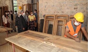 Vali DOĞAN ile eşi Gülüzar Doğan çifti; Adalı Konağı ve Kültür-Sanat Merkezi olarak hizmet verecek olan Hatay Meclisi Binası’nda devam eden restorasyon çalışmalarını yerinde inceledi.