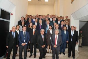 Vali Erdal Ata, ilimize hizmet veren Bölge ve İl Müdürleri ile Valilik birim müdürlerinin katılımıyla da dün bir vedalaşma toplantısı düzenledi. Dün sabah saat 09.30’da YİKOB Konferans Salonu’nda gerçekleşen toplantıda kısa bir değerlendirme yapan Vali Ata, “Değerli mesai arkadaşlarım… 26 aylık bir süreçte sizlerle birlikte çalışma ve Hatay halkına hizmet etme imkânı bulduğum için bahtiyarım. Sizlerle, sevgiye dayalı bir saygı anlayışı içerisinde hizmet üretmeye çalıştık. İlimizde ortaya konulmuş başarılı bir çalışma var ise bunları sizlerin destek ve gayretleri ile birlikte başardık. Sizlere bu anlamda teşekkür ediyorum” dedi.