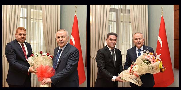 Hatay Valisi Erdal Ata, aynı gün saat farkıyla iktidar ve ana muhalefet partilerinin Hatay İl Başkanları ile İl Yöneticilerini makamında ağırladı. Perşembe günü, randevu doğrultusunda önce AK Parti İl Başkanı İbrahim Güler ile İl Yöneticilerini makamında ağırlayan Vali Erdal Ata, aynı günün birkaç saat sonrasında ise CHP’den yeni İl Başkanı Servet Mullaoğlu ile Yönetim Kurulu üyelerini makamında kabul etti. AK Parti İl Başkanı İbrahim Güler ile CHP İl Başkanı Servet Mullaoğlu, makam ziyaretinde Vali Ata’ya bir buket çiçek takdim ettiler. -Cemil Yıldız-