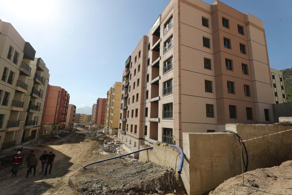 Hatay’ın Belen ilçesinde 6 Şubat 2023 depremlerinin ardından başlatılan afet konutu ve ticaret merkezi inşaatları hızla devam ediyor.