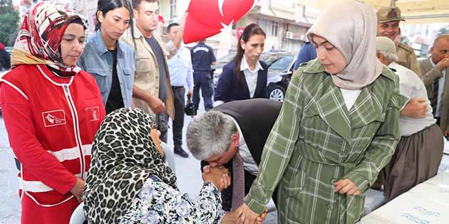 Vali Rahmi Doğan ve eşi, Perşembe akşam saatlerinde gittiği Antakya Akevler Mahallesi’ndeki Şehit evinde, Mehmet Uçar’ın babası Haşim Uçar ile annesi Fatma Uçar’a başsağlığı sabır diledi. Vali Rahmi Doğan, Şehit annesi Fatma Uçar’ın önünde eğildi, elini öptü ve şunları söyledi: