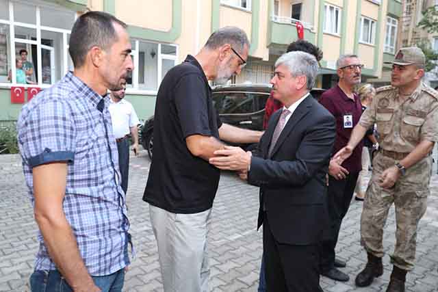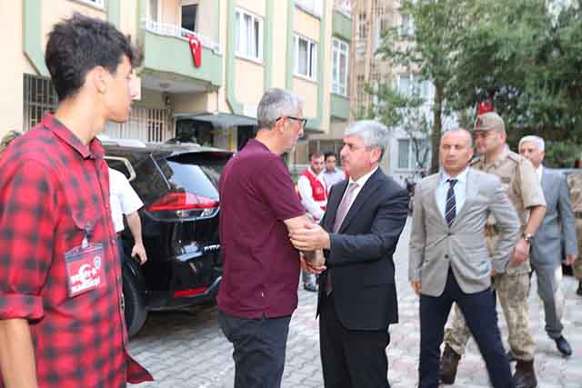 Vali Rahmi Doğan ile eşi Gülüzar Doğan, ilk olarak, Antakya Akevler Mahallesi’nde ikamet eden Şehidimiz Ali Uçar’ın anne-baba ve aile bireylerini ziyaret etti. Vali Doğan, burada yaptığı kısa konuşmada, “Herkese nasip olmayan büyük bir onur olan Şehitlik, Ali kardeşimize nasip oldu. Allah rahmet eylesin. Sizlere de, annesi babası olarak tekrar şükranlarımı sunuyorum. Sabredeceksiniz, şükredeceksiniz, bizler de sizlerle birlikte olacağız, yanınızda olacağız. Sizin acınızı hafifletme adına, devlet olarak ne gerekiyorsa yapacağız. Gösterdiğiniz metanet karşısında sizlere tekrar şükranlarımı sunuyorum” diyerek, Şehidimize Allah’tan rahmet, ailesine sabır ve başsağlığı dileğinde bulundu. Ziyarette, Kuran-ı Kerim tilavetinin ardından, Şehidimize dualar edildi.