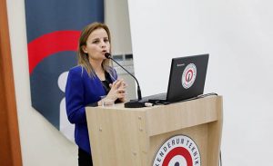 Teknolojinin, sürekli artan veriler ürettiğini ve “büyük veri” olarak adlandırılan yeni bir bilim disiplini oluştuğunu kaydeden ve stratejik kararlar almak isteyen kişi, kurum ve hatta devletlerin verileri anlamlandırmaya çalıştıklarının altını çizen Dr. Emine Uçar, konuşmasının devamında; veri madenciliğinin, işlenmemiş ve karışık halde bulunan verilerin seçilip, anlamlı bir halde işlenerek bilgiye dönüştürülmesi işlemi olduğunu ifade etti.