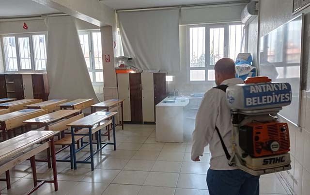 Antakya Belediyesi, koronavirüs salgınıyla mücadelede dezenfektan ve maske kriterlerine uyum noktasında vatandaşa, kurumlara destek olmağa çalışıyor. Antakya Belediyesi ekipleri, belirli merkezlerde vatandaşlara maske dağıtımını sürdürürken, Oluşturulan dezenfektan ekipleri de resmi kurum, okul, cami, alan, park ayırımı yapmaksızın ilaçlama yaparak temizlik ortamının oluşmasına çalışıyor.