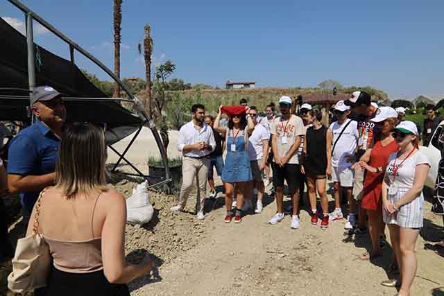 Medeniyetler Sofrası isimli ERASMUS projesi için Hatay’da bulunan öğrenciler, iki alanı da gezdikten sonra EXPO üretim seralarında zeytin fidelerini toprakla buluşturmanın deneyimini yaşadı.