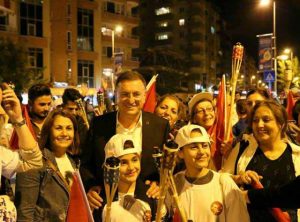 Hatay Büyükşehir Belediyesinin düzenlediği Fener Alayı etkinlikleri geçtiğimiz Cumartesi ve Pazar günleri 4 ilçemizde gerçekleşti. Cumhuriyet coşkusu yaşandı. Cumartesi günü Samandağ ile Dörtyol, Pazar günleri de Antakya ve İskenderun ilçelerinde Fener Alayı etkinlikleri düzenlendi. Büyükşehir koordinesindeki fener alayı Antakya’da yağışa rağmen büyük coşku içinde geçti. Binlerce kişi, yağışa rağmen ıslanmayı göze alarak meşalelerle ellerde fenerlerle Cumhuriyet şarkıları mırıldanarak yürüdü. Antakya’daki fener alayı etkinliğine Büyükşehir Belediye Başkanı Lütfü Savaş da katıldı. SAVAŞ; fener alayı ardından kısa değerlendirmesinde: “Cumhuriyetimizin 94. yıldönümünde hemşehrilerimizle birlikte bağımsızlık meşalelerimizi yakıp “Fener Alayı” yürüyüşümüzü gerçekleştirdik. Yağmurlu havaya rağmen bu güzel gecede şanlı bayrağımızı bizlerle birlikte dalgalandıran tüm hemşehrilerime teşekkür ediyorum” dedi.