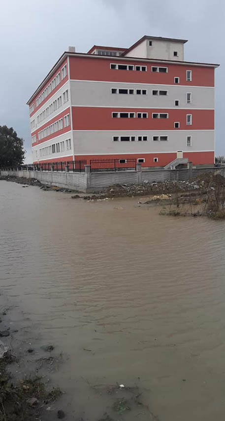 Salı günkü yağışlar sonrası 24 derslikli Samandağ-Tekebaşı Ecz. Maruf Cilli Anadolu Lisesi ile Tekebaşı Anaokulu’nda öğrenime 1 gün ara verildi. Gerekçe: Okul yolunun sulara gömülmesi, okul bahçesinin de göllenmesi.