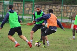 Bordo-Beyazlılar, Spor Toto 1. Lig’in 16. Haftasında oynayacakları Giresunspor maçının hazırlıklarına hızla devam ederken, dünkü çalışmanın neredeyse tamamını sağanak yağmur altında gerçekleştirdi. Dün tesislerde gerçekleşen çalışma sonunda çift kale maç da oynandı. -Cemil Yıldız-