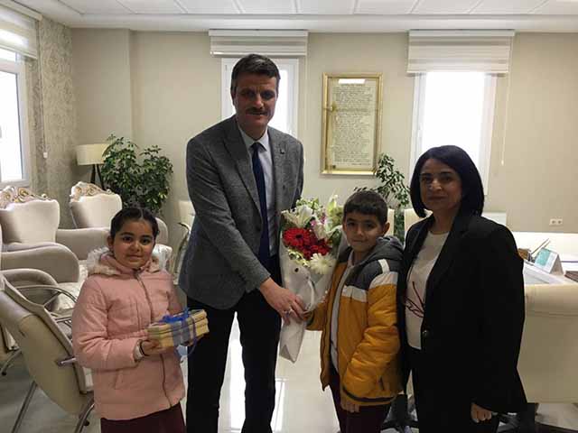 İlimiz okullarından, Ali Haydar Mursaloğlu İlkokulu öğrencisi iki çocuk, derslerde günlük olarak işledikleri “Yakın Yöneticileri Tanıma” ünitesi kapsamında İlçe Milli Eğitim Müdürü Mesut Çerko’nun kapısını çaldı.
