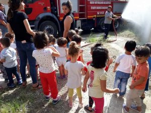 Samandağ Belediyesi yetkililerince yapılan açıklamada, afetlerin oluşturabileceği hasarları en aza indirgenmesi için neler yapılabileceği konusunda eğitim çalışmaları yapılırken, hafta kutlaması vesilesiyle de minik öğrencilere seviyelerine göre bilgiler aktarıldığı belirtildi. Bu arada, hortumla sembolik yangın söndürme çalışması tatbikatı sırasında, minik çocuklar olaya bir oyun gözüyle baktıkları, hortum ve suyu birer oyun malzemesi olarak algıladıkları ve alkışladıkları dikkati çekti. -Selvi Günay-