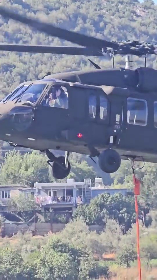 Hatay’da sınır hattında devam eden orman yangınına müdahale için barajdan