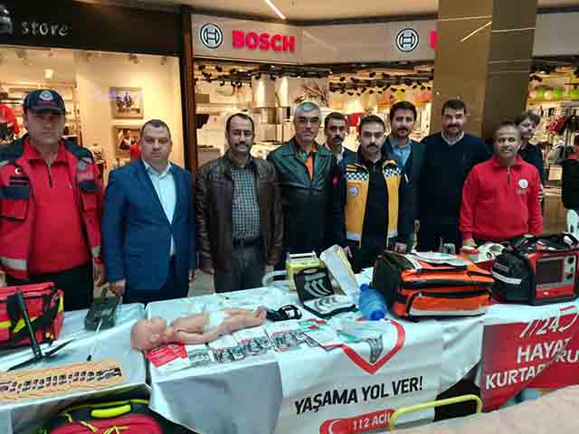 Hatay İl Sağlık Müdürü Dr. Mutafa Hambolat, 1-7 Aralık 112 Acil Sağlık Hizmetleri Haftası kapsamında, Müdürlüğün Acil Sağlık Hizmetleri Başkanlığı tarafından alışveriş merkezinde düzenlenen etkinliğe katıldı. AVM’deki etkinliğe ilgi yoğun oldu. Acil çağrı ve ilkyardım konusundaki farkındalığı arttırmak amacıyla düzenlenen etkinliğe katılan vatandaşlar, 112 sağlık çalışanları eşliğinde, maket üzerinde ilkyardım tekniği uygulama fırsatı buldular.