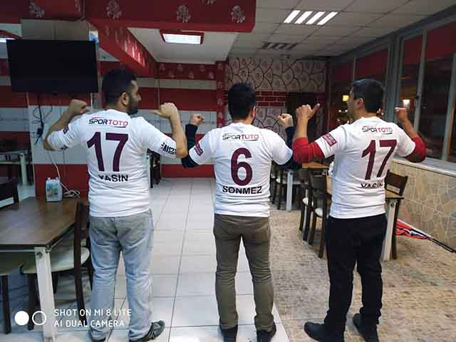 Girdiği işyerinin çalışanları, formasını giyiyor… Hatayspor’un defans oyuncusu Yasin Güreler,