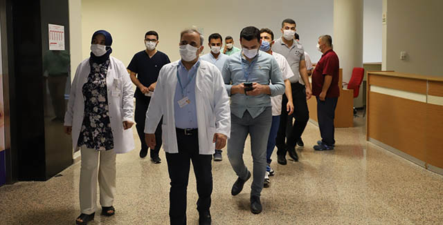 Hatay Devlet Hastanesi’nde başhekim ve yardımcıları, yataklı servislere ziyaretlerde bulundu,