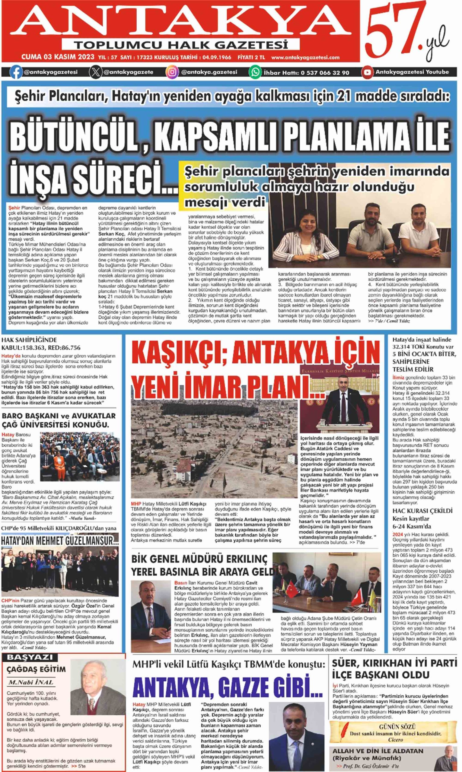 ANTAKYA GAZETESİ 03 KASIM 2023
