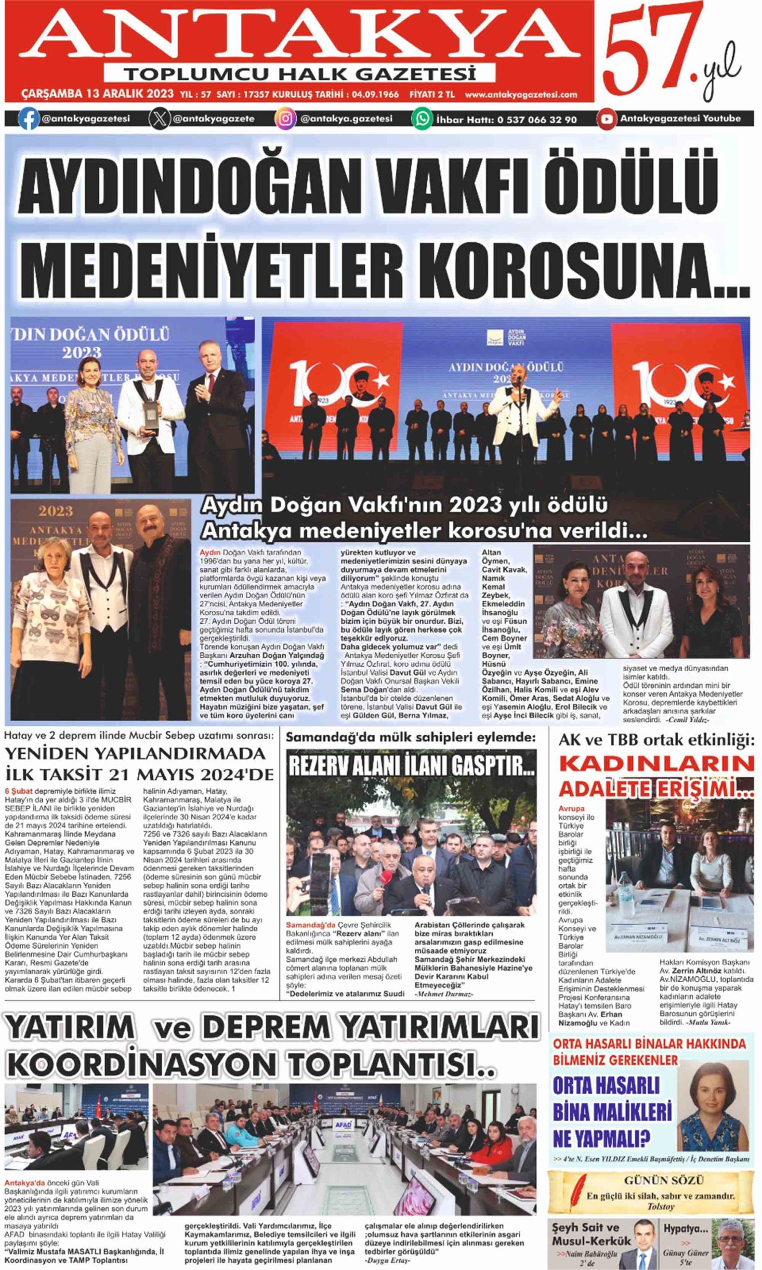 ANTAKYA GAZETESİ 13 ARALIK 2023