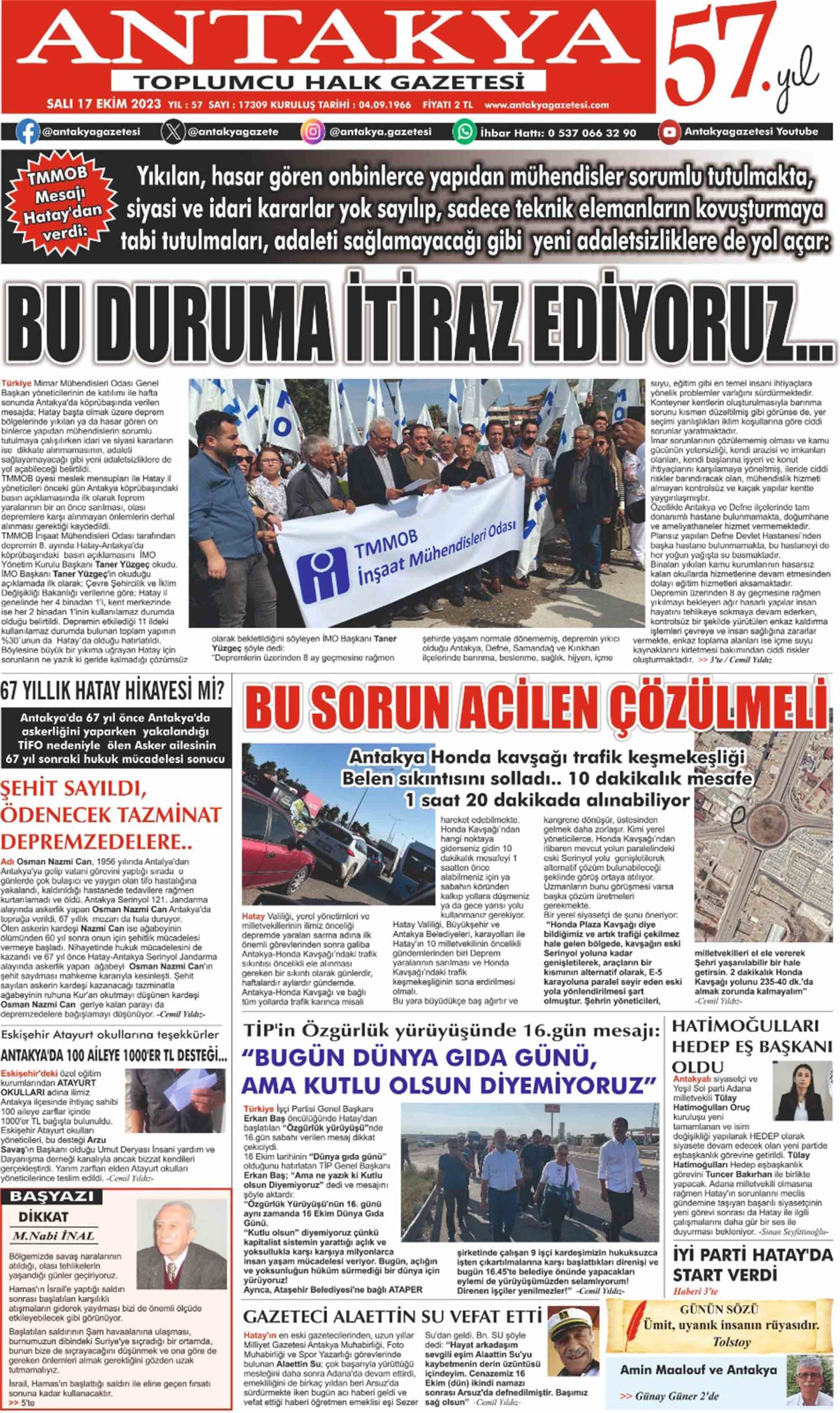 ANTAKYA GAZETESİ 17 EKİM 2023