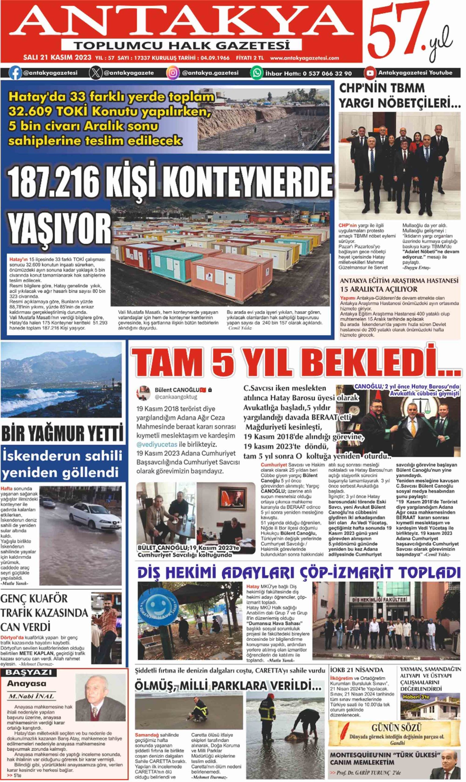ANTAKYA GAZETESİ 21 KASIM 2023