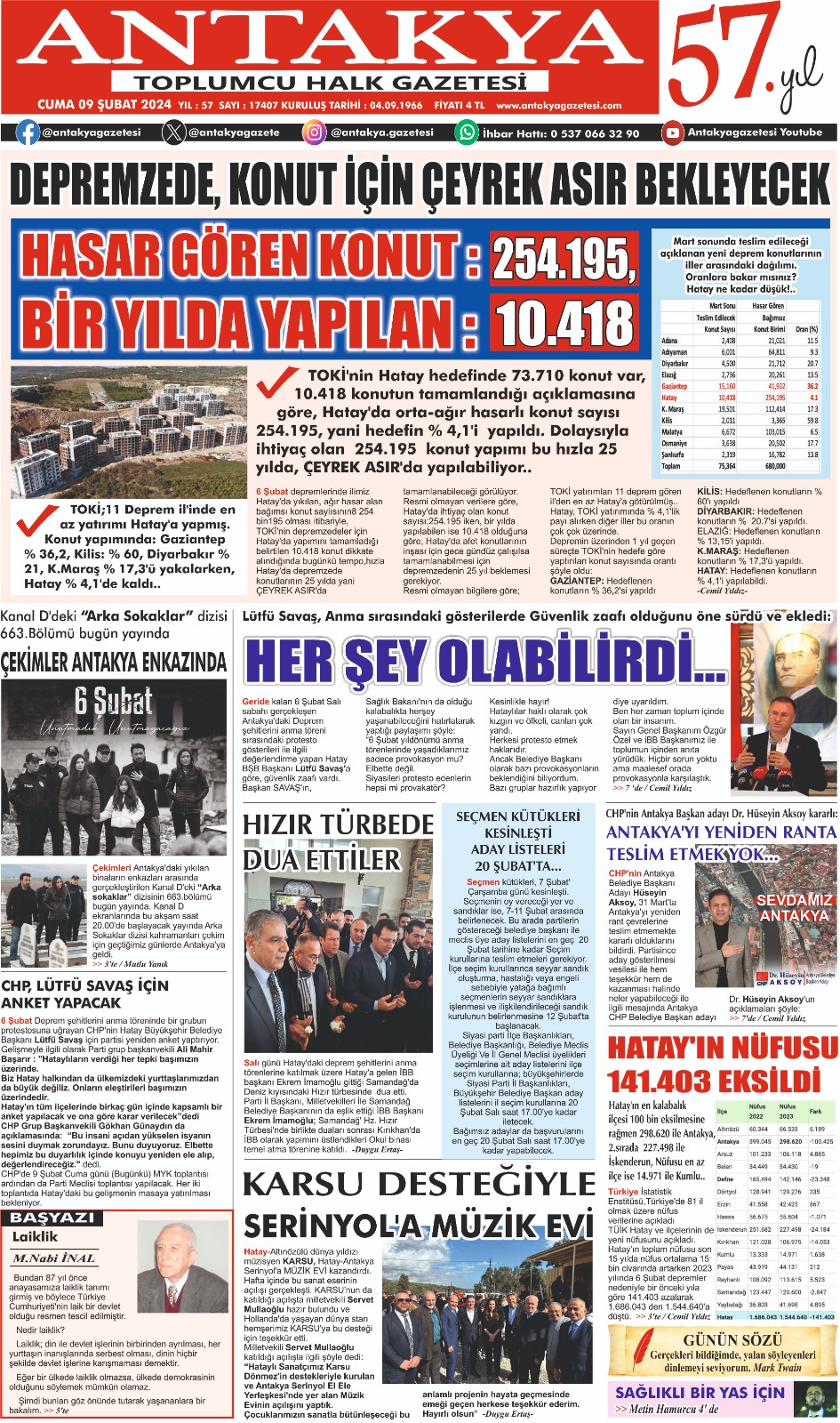 ANTAKYA GAZETESİ 9 ŞUBAT 2024