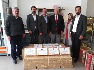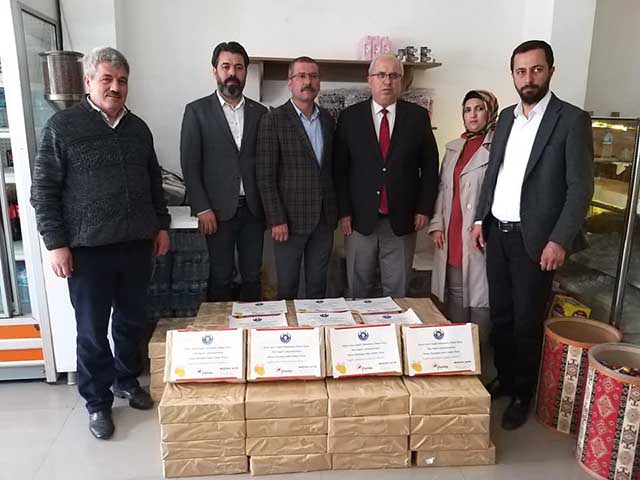kuruma gelen Başkan Mustafa Sayın, paketleri İl Müdürü’ne teslim etti ve kurum bünyesindeki personele dağıtılmasını istedi. Sağlık Müdürü Dr. Mustafa Hambolat da jeste teşekkür etti. Yayladağı Belediye Başkanı, beraberinde getirdiği çok sayıda lokum kutusunu yine İl Müdürü Hambolat’a teslim ederek, 80 İl Sağlık Müdürlüğüne gönderilmesini istedi.
