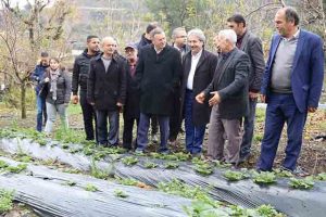 Hatay Büyükşehir Belediye Başkanı Lütfü Savaş, Yayladağı’nda tarlalara gitti, üreticilerle bir araya geldi; GDO’suz Buğday’ın, iyi Mantar’ın ve aromalı Çilek’in üretimine tanık oldu.
