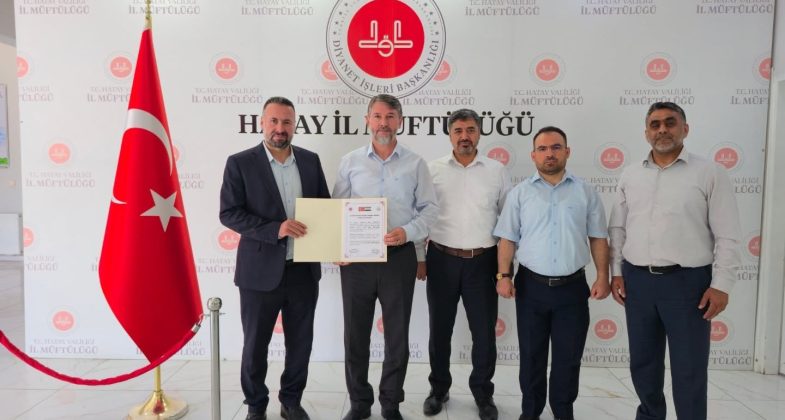 Suriye’nin Afrin kentinde 2018 yılında hizmete giren müftülük binasında yedi yıl boyunca dalgalanan Türk Bayrağı, düzenlenen anlamlı bir törenle Hatay’a teslim edildi. Zeytin Dalı Harekâtı’nın ardından bölgede sağlanan barış ve güven ortamının simgesi haline gelen bayrak, Afrin Müftüsü Salahaddin Kero tarafından Hatay İl Müftüsü Mevlüt Topçu’ya takdim edildi.