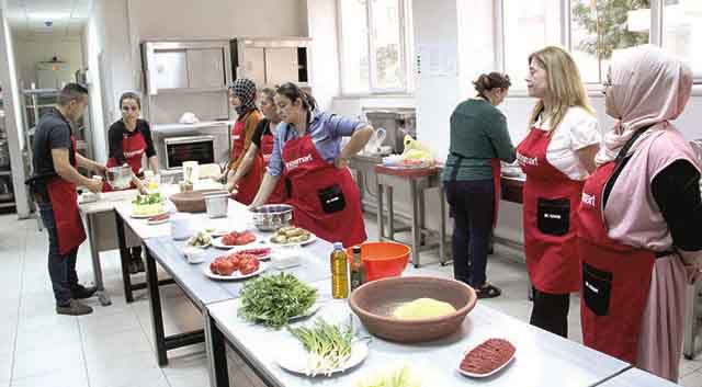 Özellikle büyük uğraş gerektiren yemek ve mezelerin yapımına ilgi gösteren kursiyerler, bu lezzetlerin yapımını eksiksiz öğrenmek için şeflerini pürdikkat dinleyip uygulamada başarılı olmak için büyük emek harcıyor. Hatay Büyükşehir Belediyesi Gastronomi Proje Uzmanı ve mutfak şefi Abdulcelil Erkan, yaptığı açıklamada, gastronomi kenti Hatay’ın eğitimli aşçılarını yetiştirmek için büyük çabalar sarf ettiklerini ve uygulamalı eğitimlerde tamamen yöresel ürünler kullandıklarını söyledi.