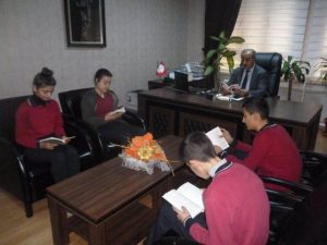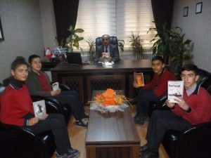 Kitaplarıyla ilçe merkezine geldiler, İlçe Milli Eğitim Müdürü, Şube Müdürleri ve personelle birlikte kitap okudular.