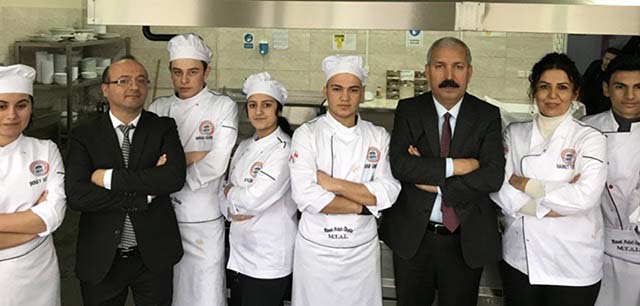 Nimet Fahri Öksüz T.A.L.’de yeni bölümler ile bir Mutfak Atölyesi oluşturuldu. 3 Mutfak, 1 Servis, 1 Ön Büro ve 1 Kat Hizmetleri bölümlerinden oluşan Mutfak Atölyesi’nin açılışına; Vali Yardımcıları Aydın Tetikoğlu ve Nursal Çakıroğlu, Hayırseverler Adnan ve Öksüz, Antakya Kaymakamı Orhan Mardinli, Defne Kaymakamı Nevzat Şengök, İl Milli Eğitim Müdürü Kemal Karahan, Defne İlçe Milli Eğitim Müdürü Kemal Gülistan, Maarif Müfettişleri Başkanı Ahmet Bayar, İl Milli Eğitim Müdür Yardımcıları Mustafa Karasu ve Zülale Yılmaz, Memur-Sen Hatay İl Temsilcisi ve aynı zamanda Eğitim-Bir-Sen Hatay 1 Nolu Şube Başkanı İsmail Bayraktar, Türkiye Kamu-Sen Hatay İl Başkanı Hayrettin Şahin, Türk-Eğitim-Sen Hatay 1 Nolu Şube Başkanı Ömer Solgun, Okul Aile Birliği üyeleri, davetliler, okul idareci, öğretmen ve öğrenciler katıldı.