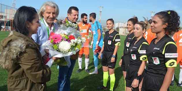 Arsuz Karaağaçspor Kulübü Başkanı Nevzat İnan, Yönetici Rızkullah Yılmaz ile kadın taraftarlar adına Kevser Yılmaz, maçın hakemleri Sevgi Günel, yardımcıları Perihan Ece, Necla Çiçek ile 4.Hakem Deniz Eker’e maç öncesi birer buket çiçek verdi. -Cemil Yıldız-